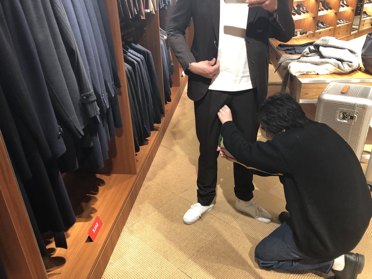 時間が少しだけ空いたので急遽六本木ヒルズのユナイテッドアローズにエクスマ新春セミナー用のスーツを買いに来ました。超お気に入りのスーツの色違いのエンジを購入。怪しい感じですが(笑)短パンにする為にはこうして裾上げをしてもらわないといかんのです。お披露目は当日に! #短パン社長 pic.twitter.com/2JzZHglVXQ 2018-01-23 16:47:00