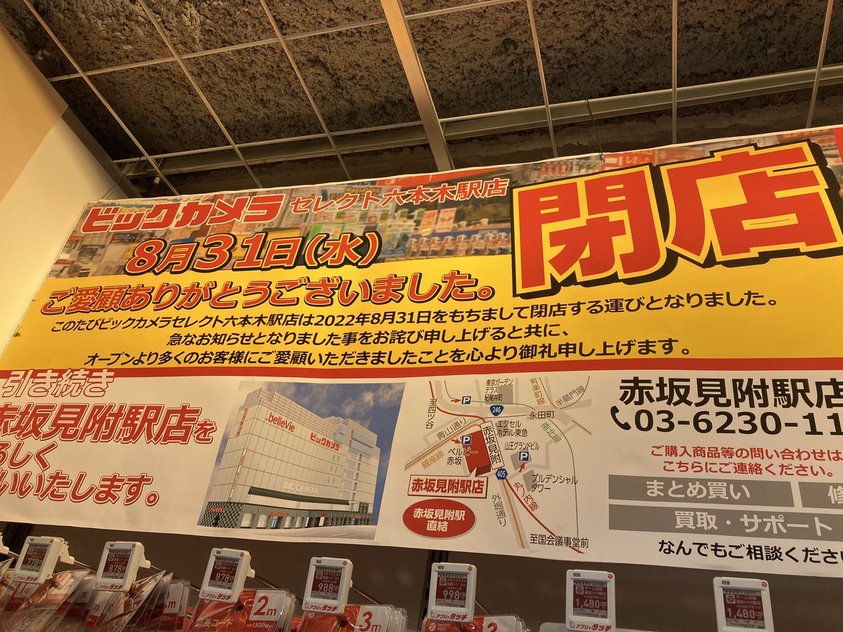 六本木のビックカメラが秒速で閉店してて笑う pic.twitter.com/soBDYFeXwR 2022-08-30 17:30:00